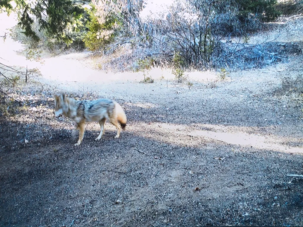This is a story about a “little” spot in the forest during and immediately after the Creek Fire. We live just off of 168 below Ockenden & we have a “game” camera strapped to a tree on the corner of our property. It is battery operated & snaps photos of any movement in the area.