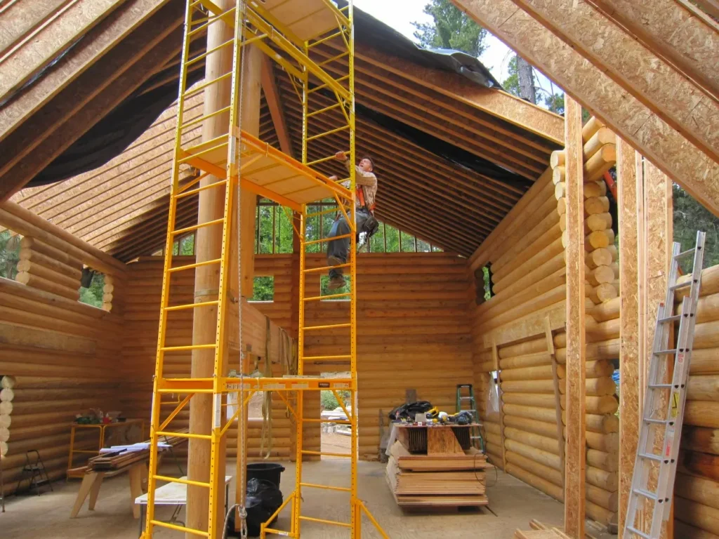 That was when the community fun really began for us. Many neighbors and friends arrived to help erect the log home. Big tools, a junky old crane, and hard work by everyone that came by were typical days to come. The process of stacking the logs went on for a few months because the snow came in shortly after the log arrival. It took nearly as much time shoveling snow as it did to fit all the logs in place. For the next couple of years of weekend construction, it was common for friends or neighbors to show up just to lend a hand. We will forever be grateful to them for that. It really showed us how special and wonderful this tight knit community is.