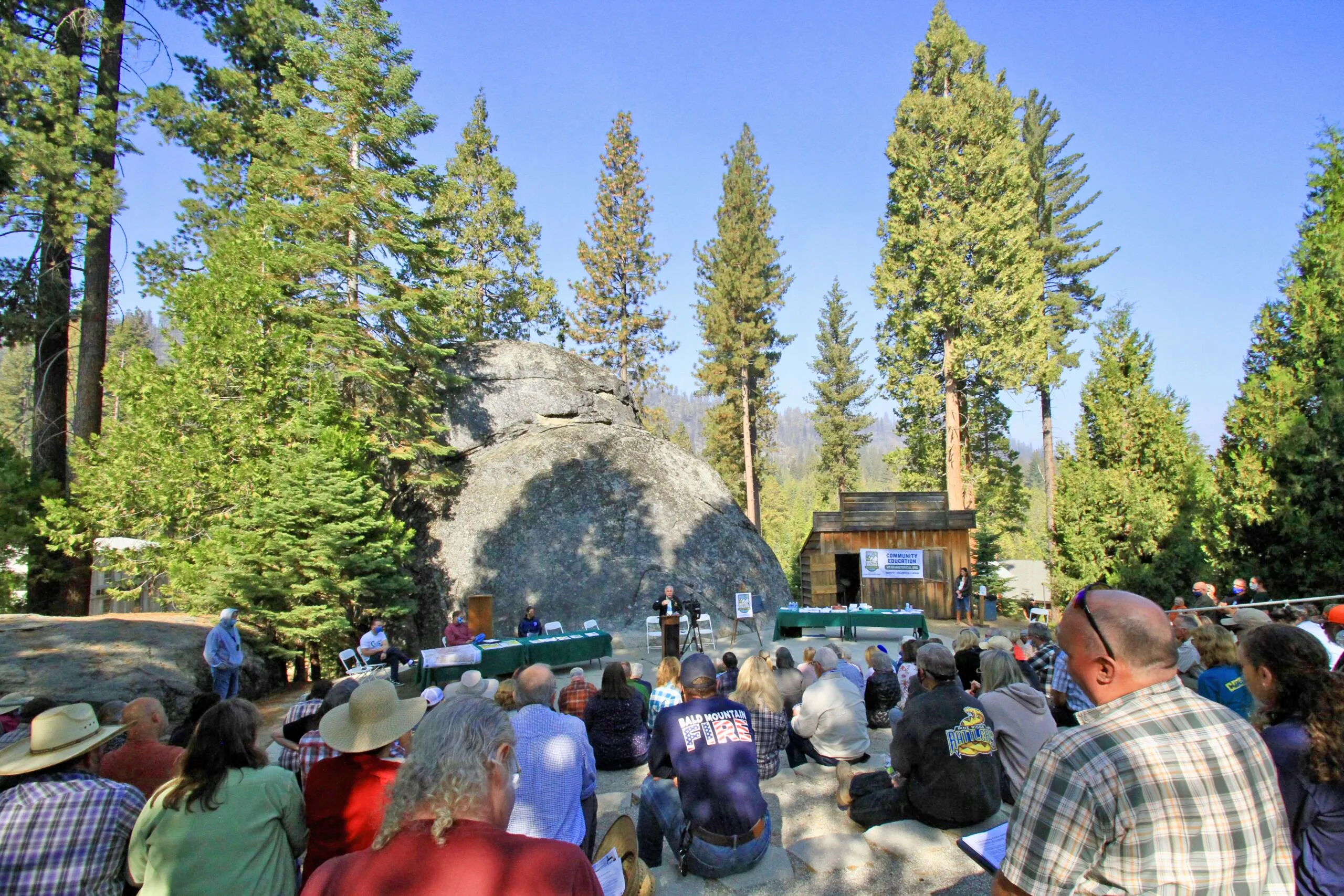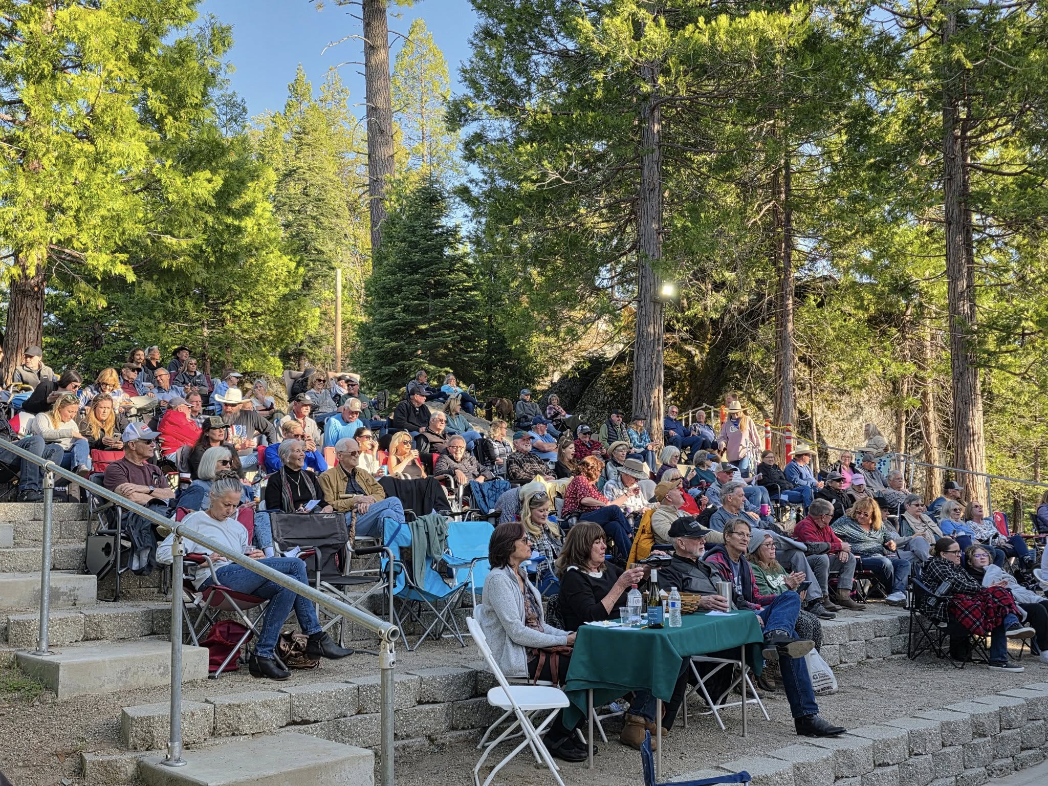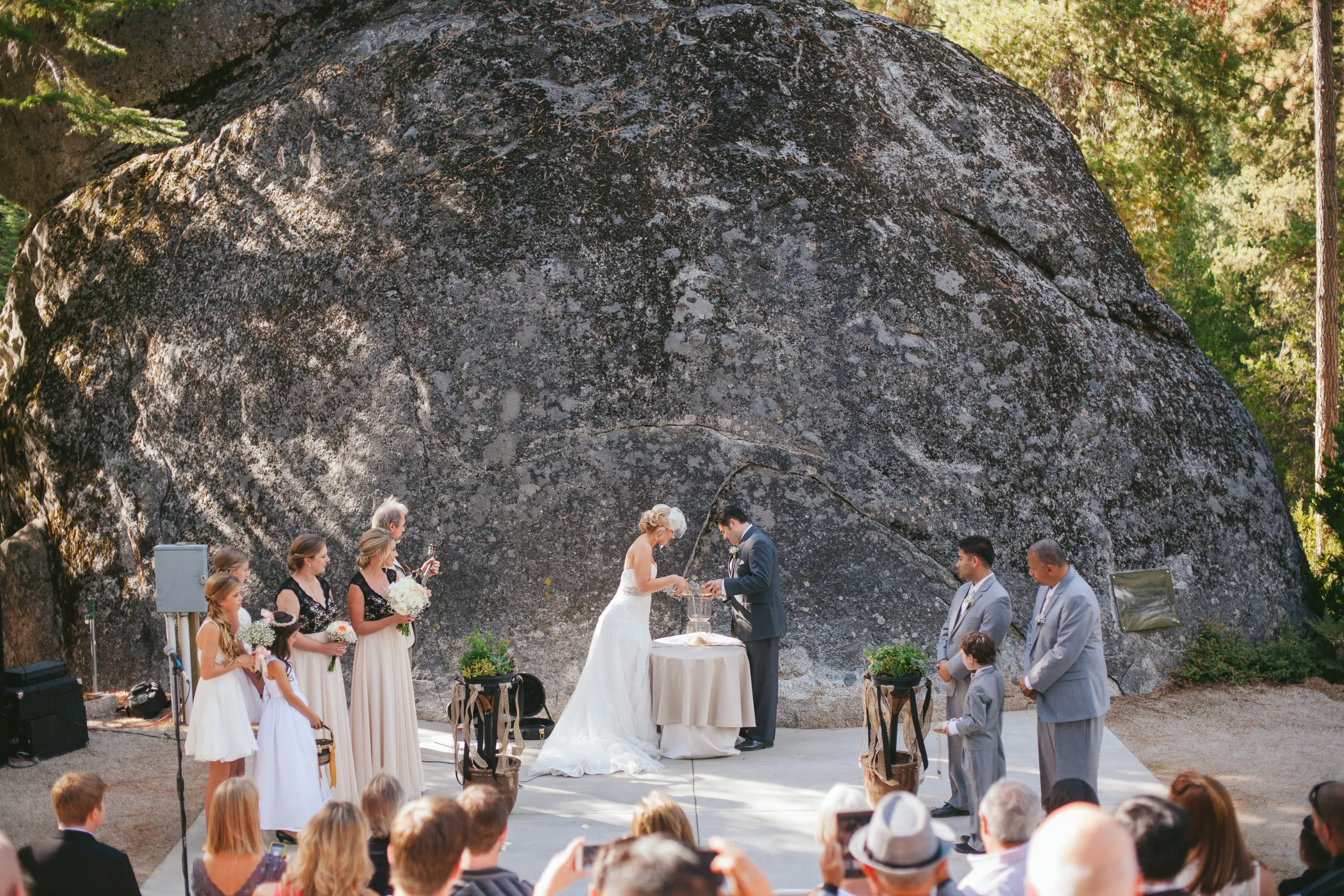 Our tree-covered amphitheater seats 230 guests and has a massive boulder as a picturesque backdrop.