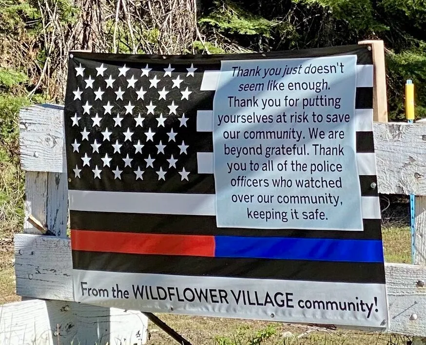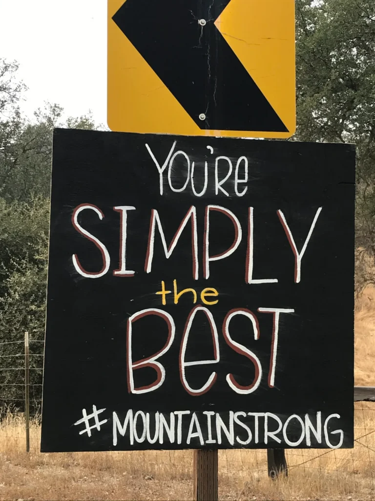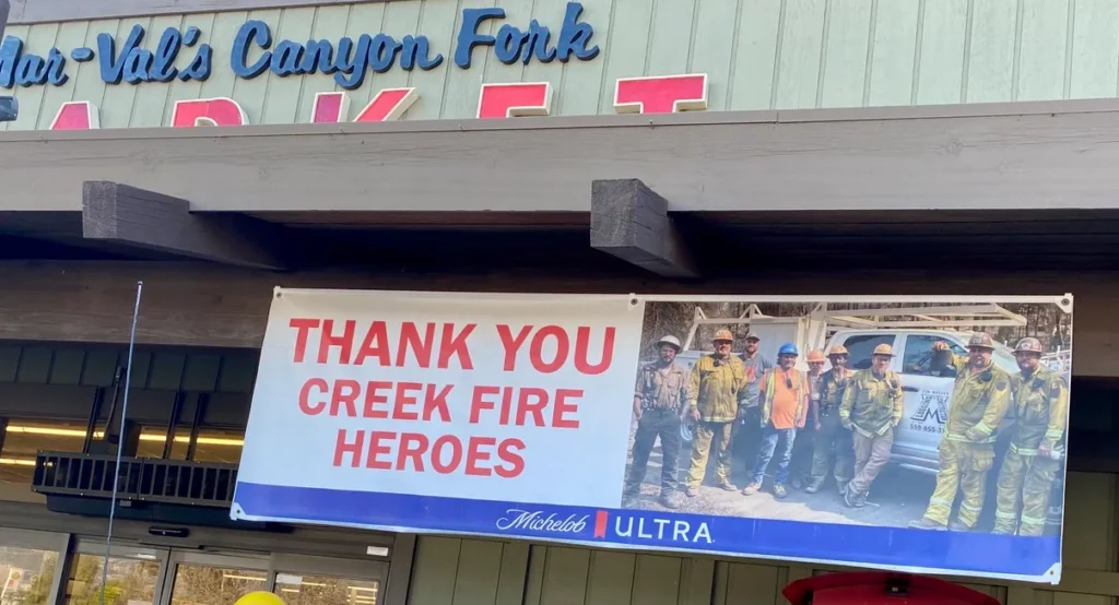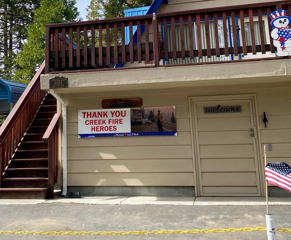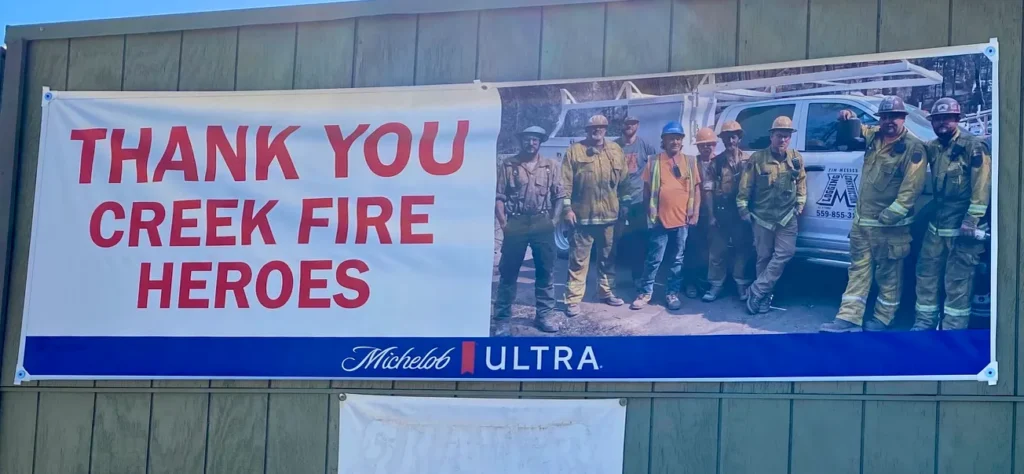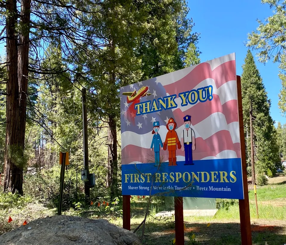 Roadside signs abound encouraging residents and thanking the first responders for their efforts during the Creek Fire.